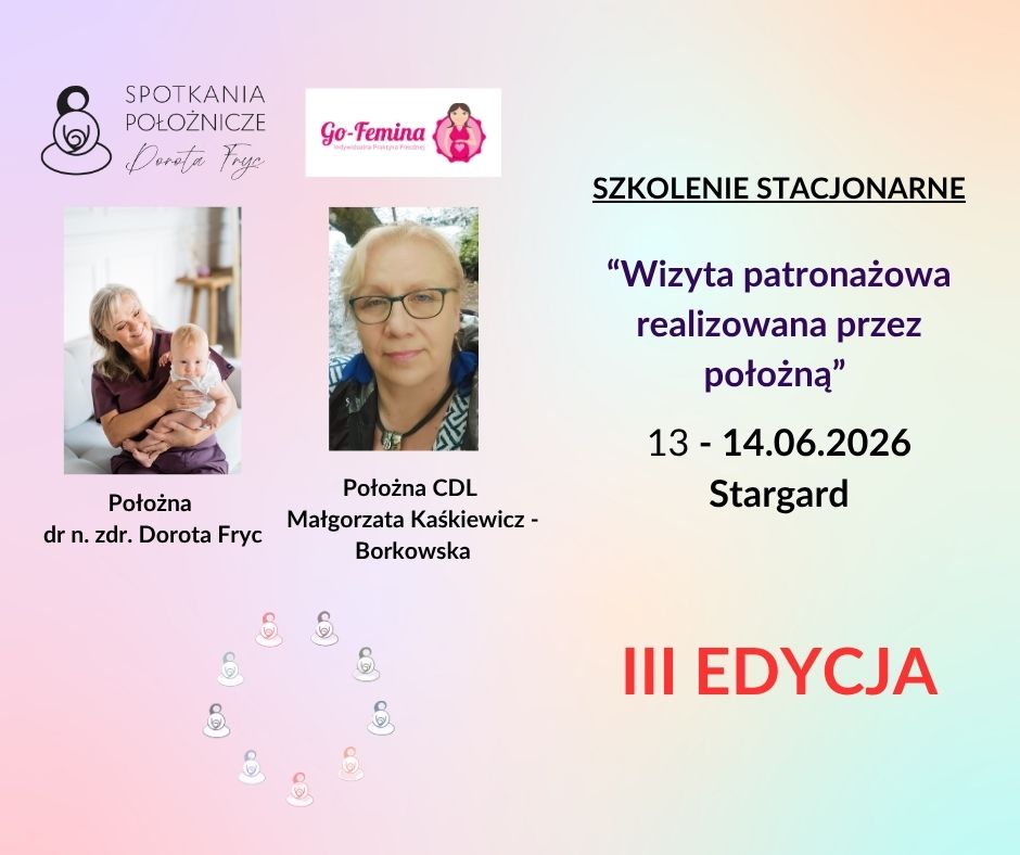 Dzisiaj przychodzę z ofertą szkolenia – będzie to już III edycja tego szkolenia, szytego na miarę potrzeb położnej rodzinnej/domowej – „Wizyta patronażowa realizowana przez położną”